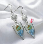 These earrings are handmade resin dangle earrings featuring a black woman silhouette rocking some distressed denim jeans and a floral charm. Added mini rhinestones inside the bottom bezel.